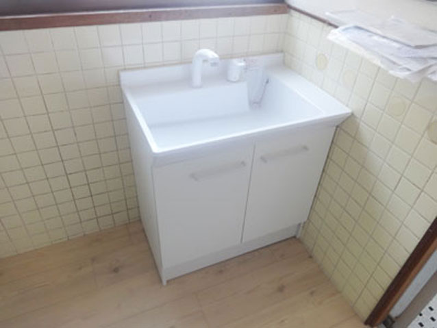 | 給湯器、シングルレバー混合水栓設置!流し台を新品、洗面台をシャンプードレッサーに交換して新品、1階トイレを和式から洋式へ新品になりました♪ |